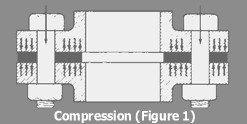 1. Compression (Figure 1 ). This is by far the most common method of effecting a seal on a flange joint and the compression force is normally applied by bolting.