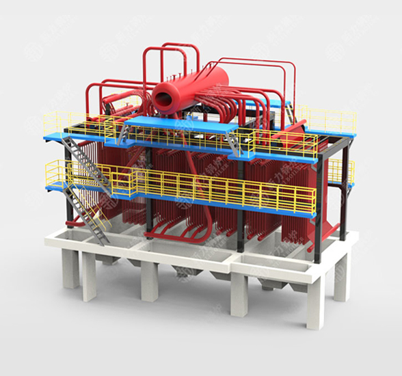 鍋爐采用臥式隧道直通式布置,能利用灰塵自重進(jìn)行自動清灰,保持受熱面的清潔,提高鍋爐換熱效率。鍋爐采用特殊的密封裝置,降低鍋爐的漏風(fēng),提高了鍋爐的效率。因煙氣橫向沖刷受熱面,傳熱效果好,傳熱系數(shù)高
