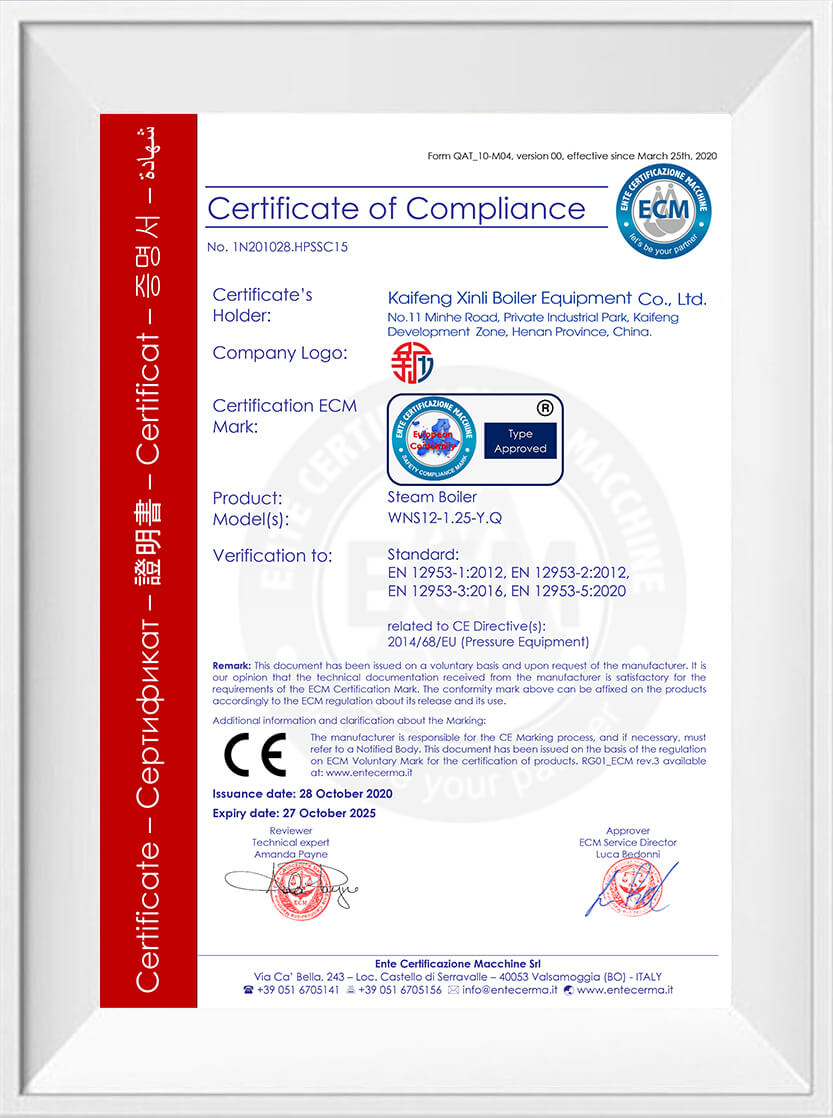 新力鍋爐通過ISO9001質量管理體系認證,ISO14001環(huán)境管理體系認證,OHSAS18001職業(yè)健康安全管理體系認證,企業(yè)信用評級AAA認證。同時取得CE, EU, SASO, SONCAP, PVOC, COC, EAC等國際貿易通行證。多年來的不懈付出,使新力鍋爐成為一家廣受客戶信賴和贊譽的鍋爐制造型企業(yè)。